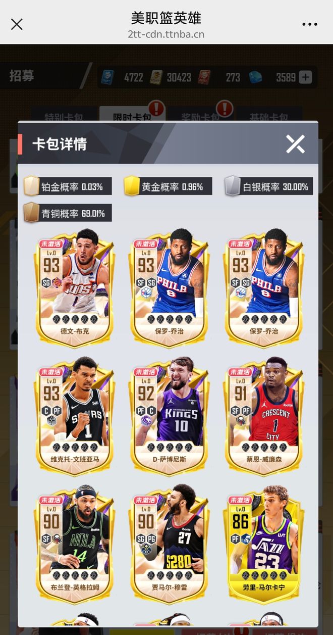 扫码进入游戏-招募-卡包商城,即可抽取文班铂金卡!