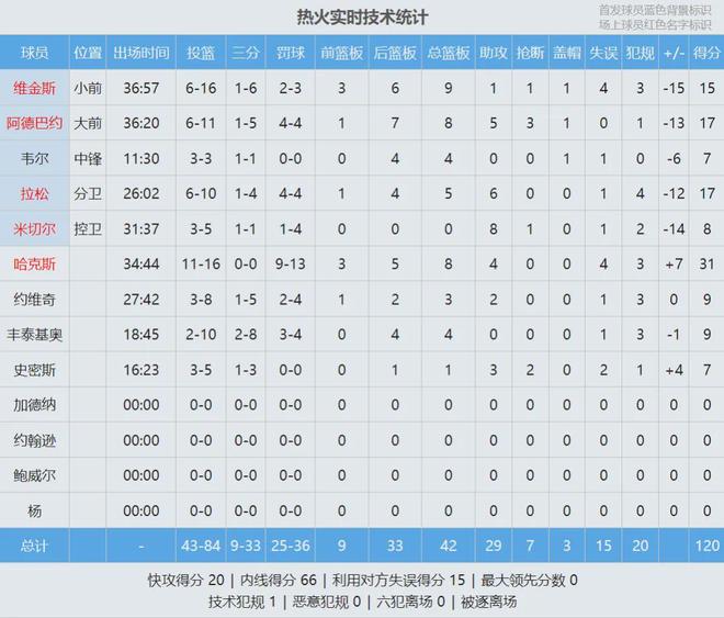 首节战罢,湖人43-36领先7分。场上得分最高的热火替补小海梅-哈克斯,单节5投4中砍下12分。热火三分8中1,外线太铁了,湖人首节三分12中5。第二节东契奇找回手感,湖人一度拉开到18分。上半场还没打完,湖人得分破70!